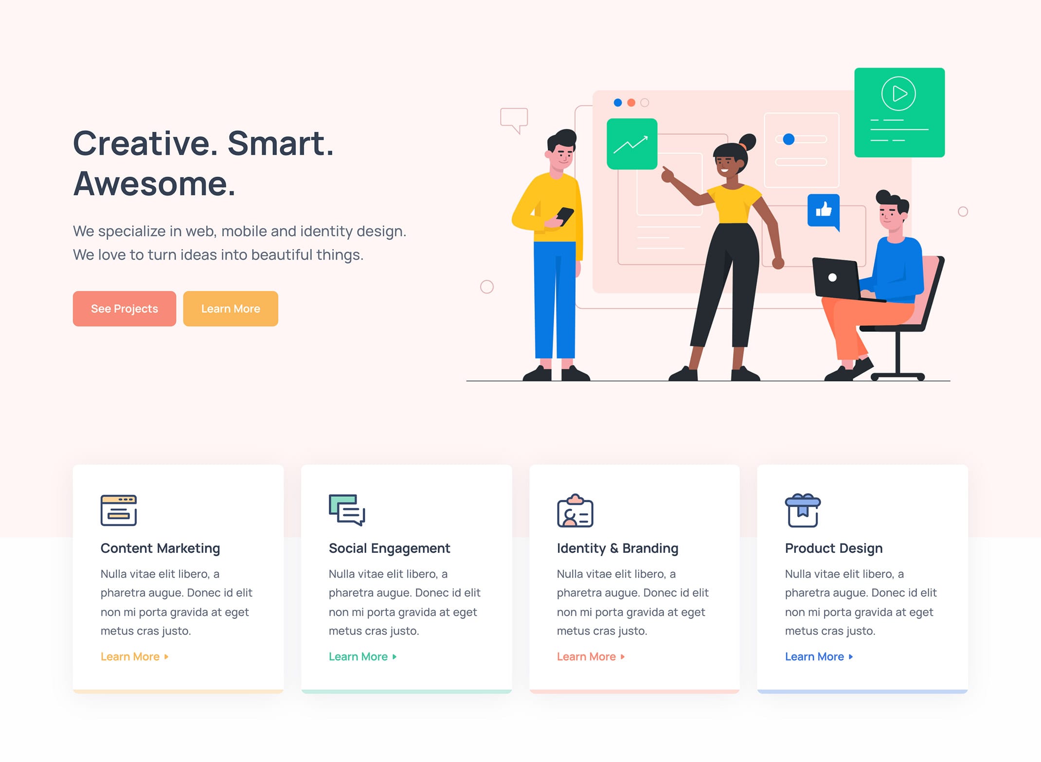 <h2 class="display-1 mb-4">Creative. Smart. Awesome.</h2>